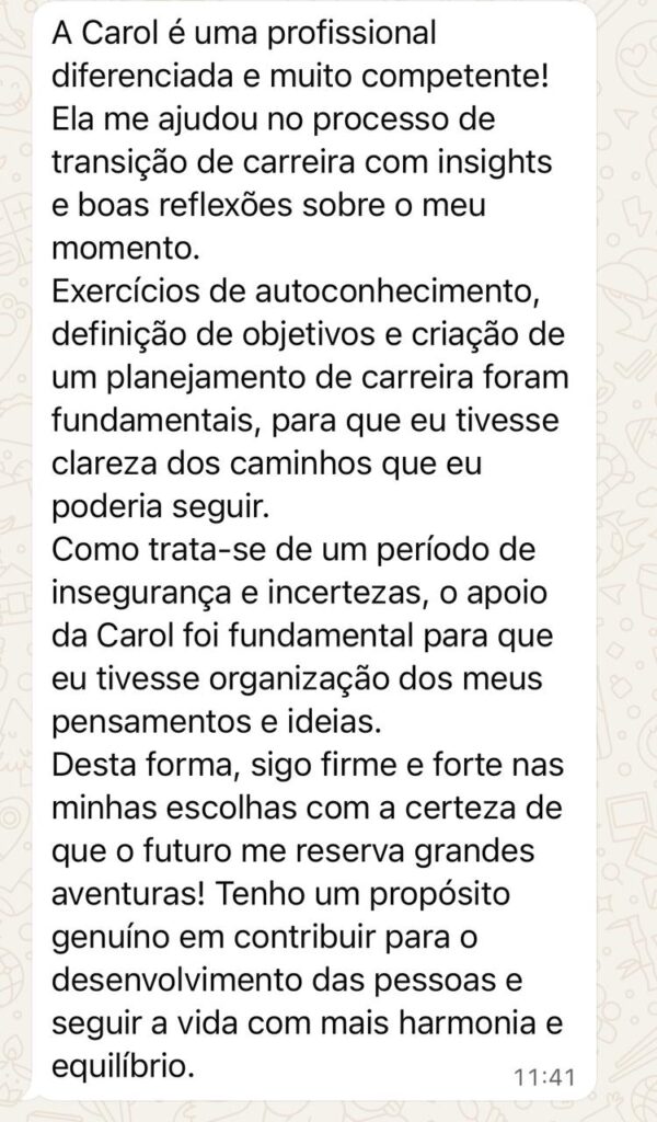 E fechar a semana com esse feedback tão bacana só reforça o meu propósito de desenvolver o potencial que todos nós temos 💓